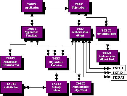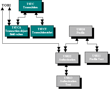 This group envelops the tables that the authorization administrator must primarily customize. TSTC, TSTCA and TSTCT contains authorization-checks controlling access to transactions. These checks are performed automatically by the R/3 system whenever a transaction is called via the R/3 menu or via the command-line.